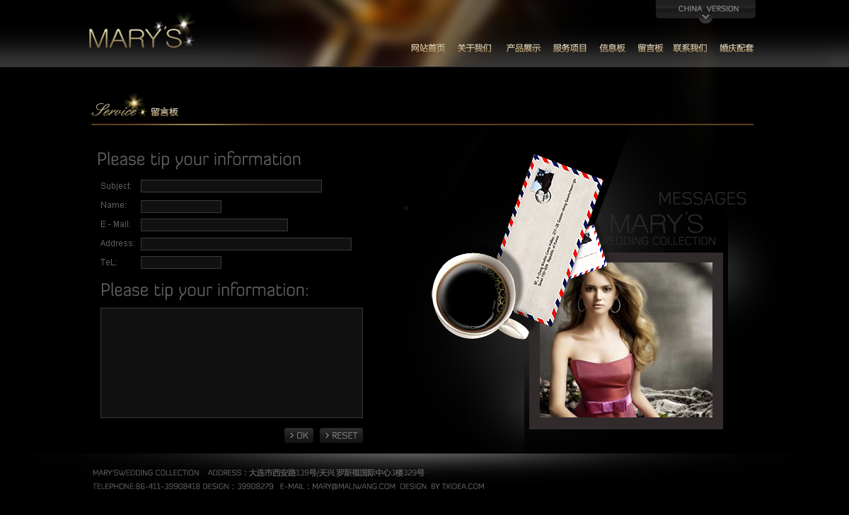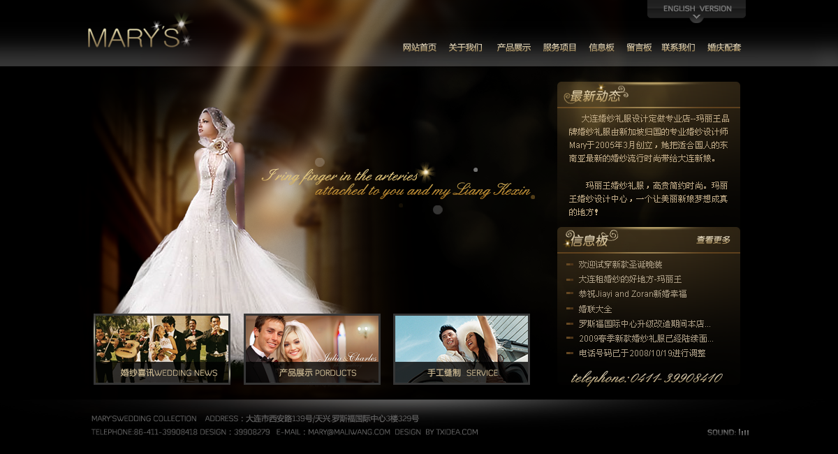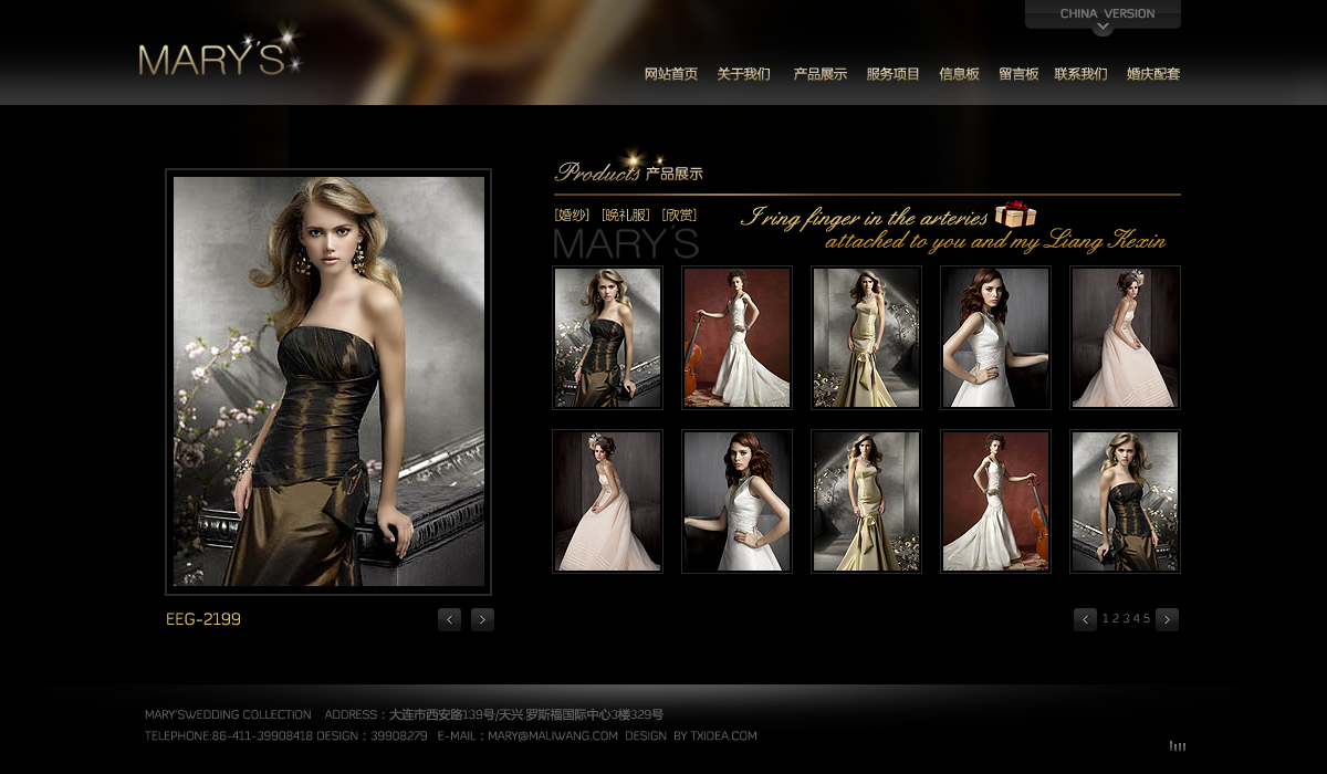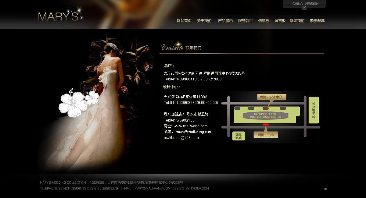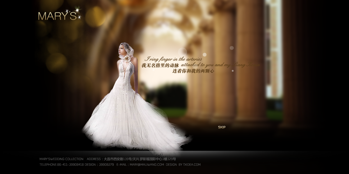 瑪麗王婚紗禮服網(wǎng)站體現(xiàn)由新加坡歸國的專業(yè)婚紗設(shè)計師Mary于2005年3月創(chuàng)立